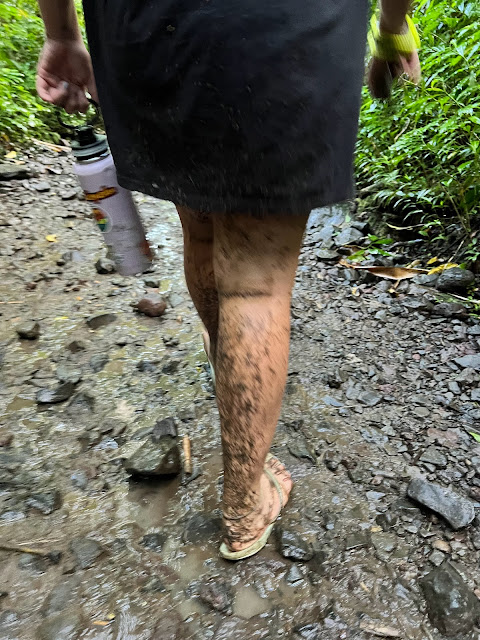 I don't know how Maisie survived, but she hiked on all those rocks in her slippas! Every flip-flop-step flicked more and more mud onto her legs.